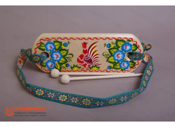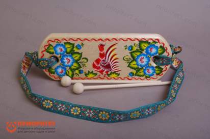 Пастуший барабан авторской разработки украшен народной росписью, которая привлечет внимание малыша к инструменту. Палочки и атласная лента сделают инструмент удобнее для малыша. Его можно использовать для обучения ребенка музыке и развитию у него музыкального слуха, или просто проводить с ним веселые игры, развивая моторику и слуховое восприятие малыша. Натуральная древесина из березы способствует ясному и громкому звуку, а также является экологически-чистым и гипоаллергенным материалом.