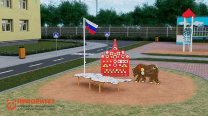 - Элемент патриотической площадки «Медведь» (Материал: Фанера ФСФ, металл. Габариты: 71х108х1,5 см.