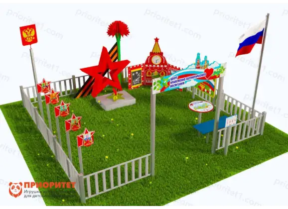 Патриотическая площадка «Центр патриотического воспитания юных патриотов» - это уникальный и масштабный уличный комплекс, который станет неотъемлемой частью образовательного учреждения для детей от 3 лет. Она включает в себя разнообразные интерактивные модули и стенды, нацеленные на формирование чувства гражданственности и патриотизма у подрастающего поколения. Эта площадка представляет собой целый образовательный центр на свежем воздухе, где дети могут не только развлекаться, но и получать важные знания о своей стране.