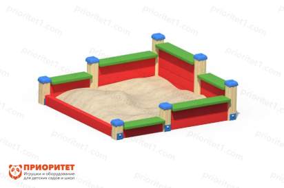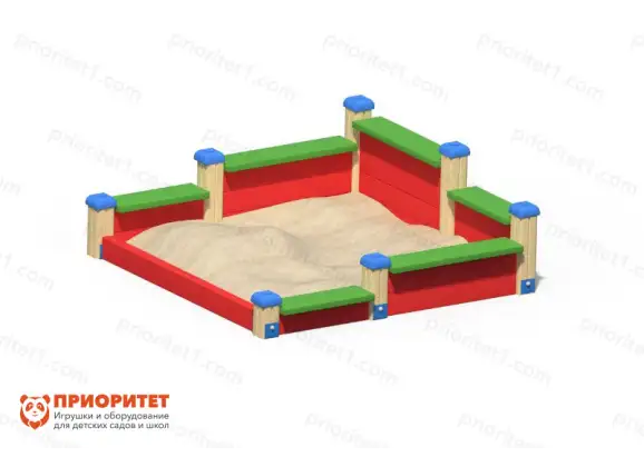 Часть детского развлекательного комплекса, изготовленная в соответствии с действующими стандартами ФГОС. Может использоваться в общественных местах, на улицах, в детских образовательных учреждениях. Допустимо размещение песочницы на частных придомовых территориях и во дворах. Представлена песочницей с бортами-скамейками. Способствует гармоничному развитию малышей. Подходит для применения детьми, начиная с 2-х лет. Малышам помладше рекомендуется использование под чутким наблюдением взрослых.