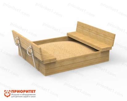 - Откройте крышку песочницу, чтобы сделать две скамейки – пусть ребята попробуют играть сидя.