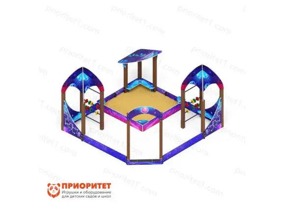 Внести разнообразие на детскую площадку и сделать пребывание на ней интересней, можно, заменив старую песочницу на песочный дворик. Модель оформлена в космической теме и похожа на отдельный сказочный мир. Выглядит загадочно и притягательно. Побуждает к фантазиям и сюжетным играм.