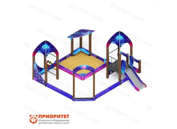 Игровая зона для детской площадки с тематическим оформлением станет достойной заменой традиционной песочнице. В песочном дворике дети смогут чередовать игры с песком с катанием на горке и посиделками в беседке. А родители будут видеть своих детей с любой стороны площадки.