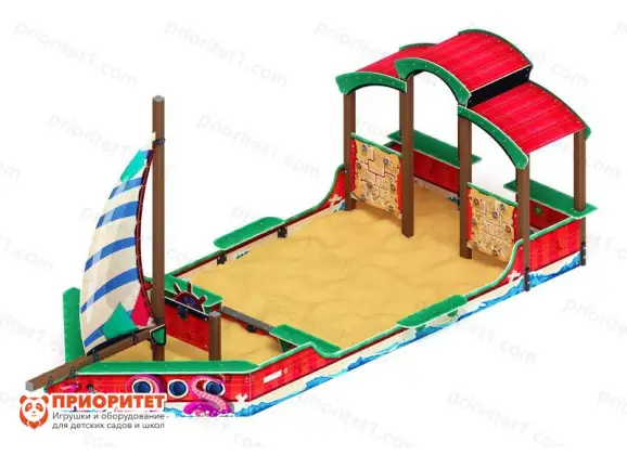 Большая песочная зона в форме морской яхты, плывущей по волнам, с парусом и штурвалом. Она привлекает внимание и побуждает к фантазированию. Детям легко будет представить себя в роли капитана, моряка или путешественника, поиграть в пиратов или искателей приключений. Коллективные игры сближают детей и помогают адаптироваться в социуме.