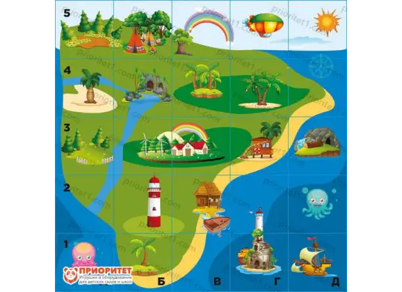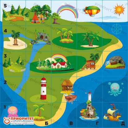 Товар предлагает осуществить путешествие по острову сокровищ. Игровое поле предполагает наличие нескольких занимательных остановок: маяк, оазисы, море, пляжи, самолеты, дирижабли. Все это достойно пристального внимания. Помогите ребенку увидеть всю эту красоту! Играйте вместе с ним. Товар ориентирован для детей от трех до десяти лет.
