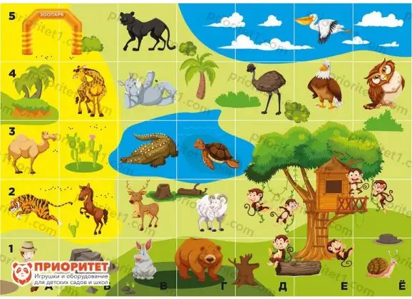 Яркое цветное поле привлекает детское внимание, приглашает детей прогуляться по зоопарку и познакомиться с различными видами животных и птиц. На оборудовании есть разметка 15x15 см, которая соответствует длине шага лого-робота. Каждая клетка содержит свой уникальный рисунок, на котором можно закончить путь или начать его. Использовать поле рекомендуется под стеклом, чтобы Пчелка могла свободно передвигаться, а оборудование прослужило как можно дольше.