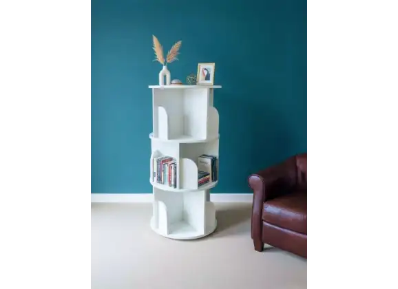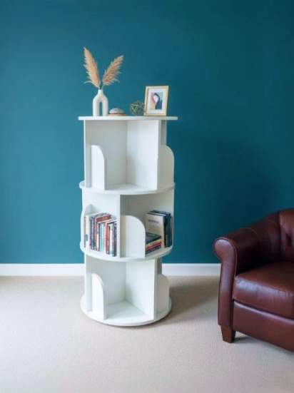 - Удобство использования: вращение полки избавляет от необходимости искать нужную книгу — всё всегда под рукой.