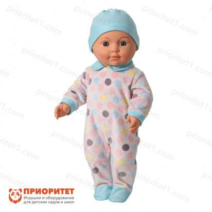 Пупс одет в нежный велюровый разноцветный комбинезон и трикотажную шапочку. Одежда легко застегивается на контактную ленту и может быть заменена на другой комплект из дополнительно приобретенного набора или пошитый собственноручно. Переодевая пупсов, ребенок научится ухаживать за малышами, разовьет чувство стиля и мелкую моторику.
