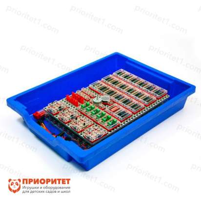 - Представляет собой набор деталей, из которых можно конструировать электронные схемы. Начиная с основ, малыш медленно погружается в тайны электроники и цифровой техники, учится соединять правильные элементы и получать ответное действие, разбирается в сложных схемах и многое другое.