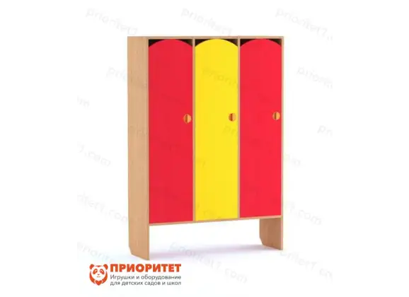 Возраст ребенка всегда учитывается при выборе мебели в ДОУ. Комплектование раздевалок для дошкольного учреждения всегда начинается с выбора удобных шкафчиков. Если в комнате недостаточно места, то можно экономить за счет практичных конструкций. В этой модели предусмотрены ниши под скамью. Лавочки легко задвигаются под шкаф, освобождая пространство раздевалки.