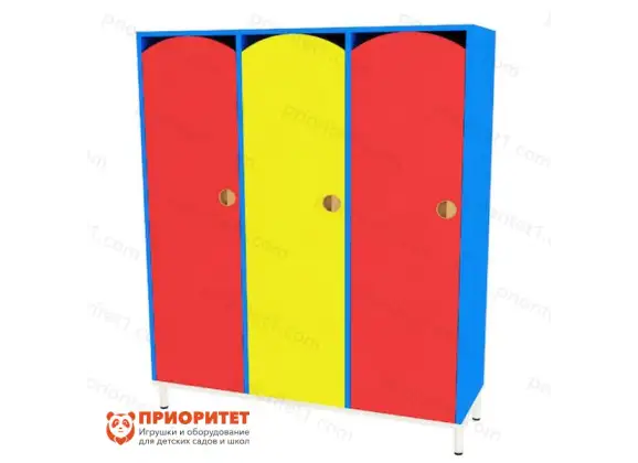 Шкаф из трёх секций, без ящиков и дополнительных выдвижных конструкций. Он предназначен для хранения одежды, которой пользуются дети на занятиях спортом. Можно поставить шкаф в квартиру, в детскую комнату, но в этом случае, ребёнок будет хранить в шкафу не только одежду, но и игрушки, спортивный инвентарь и какие-либо другие вещи. В детских садах шкафы строятся в ряды для обеспечения безопасности при их использовании. Каждый ребёнок должен уметь находить свою секцию и пользоваться дверцами шкафа.