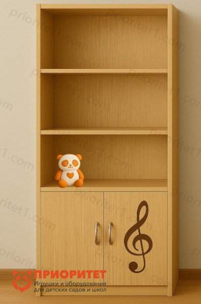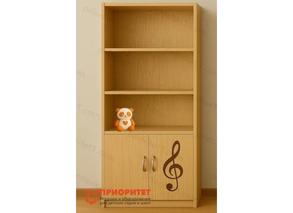 Элегантный и функциональный шкаф, созданный специально для образовательных пространств — музыкальных кабинетов, классов, библиотек и зон хранения в детских садах и школах. Его отличительная особенность — декоративный элемент в виде скрипичного ключа на фасаде, который подчёркивает тематическое назначение мебели и создаёт атмосферу творчества.