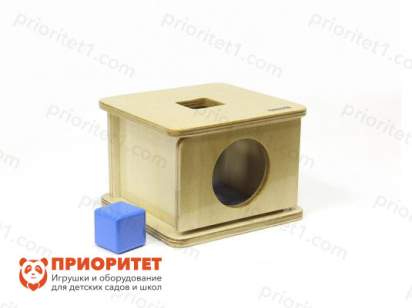 Этот отличный тренажер для развития мелко моторики кисти, будет интересен детям в возрасте от 18 месяцев. Привлекает он именно возможностью занять свои ручки. Ребенку предстоит сложная задача, вложить кубик в квадратное отверстие. В процессе игры он знакомится с фигурами куба и круга. С верхней части коробочки отверстие для куба, а с передней есть круглое отверстие. Туда вполне поместится небольшой шарик. Игрушка сделана из безопасных для малыша материалов. Нет мелких деталей. Пособие имеет сертификацию ФГОС.