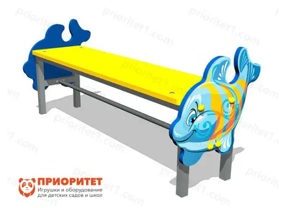 Яркая детская скамейка из цельносварного металлического каркаса украшена фигурными вставками. Она гармонично сочетается с любой детской площадкой и обеспечивает привлекательное и комфортное место для отдыха малышей. Прочная влагостойкая фанера и цельнометаллический каркас не боятся влаги, солнечных лучей и экстремальных температур, стойко выдерживая интенсивные нагрузки. Для безопасности все углы скамейки имеют закругления, элементы фурнитуры прикрыты заглушками, а для покраски и декора применялись только гипоаллергенные материалы.
