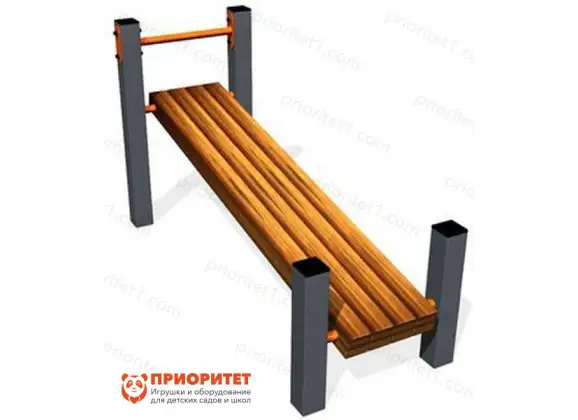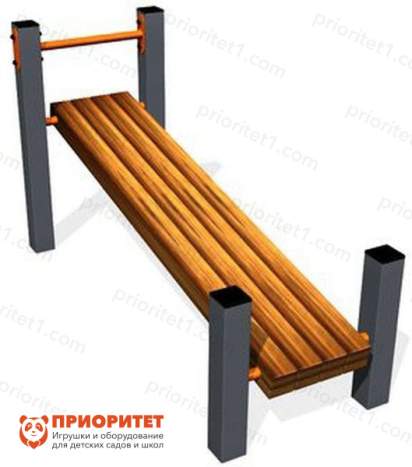 Скамья используется для развития мышц пресса. Пользоваться предметом можно в помещении и на открытом воздухе. Маленькие дети должны пользоваться скамьей под надзором тренера или родителей. Скамья выглядит, словно несколько бревен, приставленных друг к другу. Нестандартное оформление помогает конструкции иметь привлекательный и непривычный внешний вид, выделяет ее на площадке.