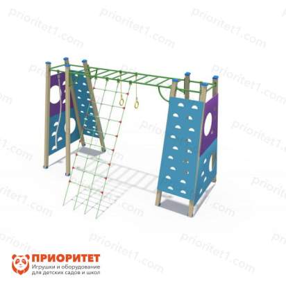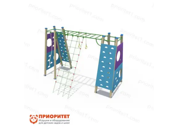 Яркий спортивный комплекс для детей дошкольного возраста подарит малышам бурю приятных впечатлений и широкие возможности для всестороннего развития. Малыш сможет проявить свои навыки скалолазания, потягивания и гимнастики, активно развивая все группы мышц, а также коммуникативные навыки. Комплекс имеет антивандальную конструкцию, выдерживающую любые нагрузки, а также подходит для круглогодичной эксплуатации на придомовых детских площадках, в дошкольных и школьных учреждениях. Все углы конструкции скошены, а элементы фурнитуры закрыты заглушками, что исключает риск случайного травмирования малыша.