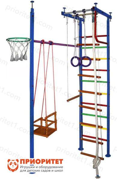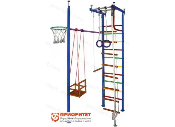 Небольшой по габаритам, но с максимальной функциональностью спортивный комплекс для детей с качелями и со ступенями ПВХ станет незаменимым оборудованием. Его можно использовать для оборудования спортивного зала в детском саду или в школе. Благодаря тому, что на небольшой площади размещается несколько видов оборудования, подходит для приобретения в квартиру. Таким образом, комплекс – универсален. Заниматься физическим развитием с малышами будет невероятно удобно. А качели просто приведут их в полный восторг. Вся конструкция имеет надежные крепления, отличается тремя видами опоры: на стену, распор между полом и потолком. Имеется сертификация ФГОС.