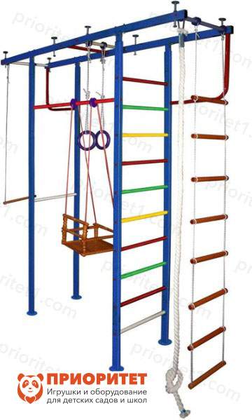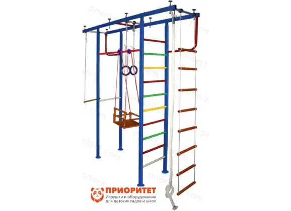 Яркий, цветной, функциональный спортивный комплекс станет любимым местом игр детей. Причем не только самых маленьких, но и уже вполне взрослых. Здесь можно воплотить самую невероятную фантазию. Можно качаться на качелях. Лазить и спускаться по ступенькам. К тому же конструкция выполнена из прочного металла. А сама конструкция имеет надежное крепление. Если приобрести в дополнение к комплексу еще и спортивные маты, то игра станем максимально безопасной. Все материалы абсолютно надежны и качественны. Имеется сертификация ФГОС.