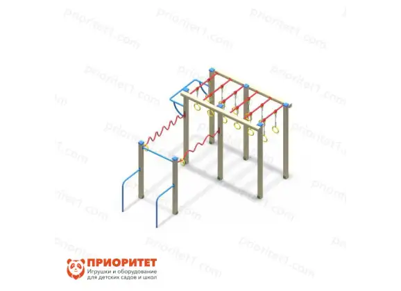 Оригинальная красочная металлическая конструкция украсит детскую площадку и станет магнитом для всей ребятни в округе. Несмотря на свою внешнюю замысловатость, комплекс прост в применении и подойдёт для детей с разными физическими возможностями. На нем отсутствуют острые части, фурнитура скрыта в корпус, благодаря чему снижается риск травмирования.