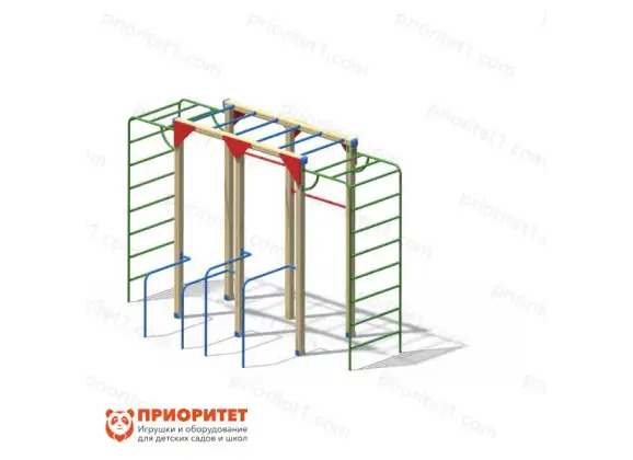 Спортивный комплекс предназначен для занятий физической культурой с детьми. Дети отличаются своей гиперактивностью и большим запасом энергии. Им необходимо выплескивать переизбыток своих сил. Поэтому комплекс соберет вокруг себя всех активных детей. Разнообразие спортивного инвентаря позволяет проводить веселые соревнования не только между детьми, но и между взрослыми. Комплекс можно установить на придворных детских площадках, игровых зонах учебных заведений либо в частном секторе.