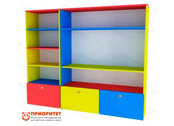 - Яркие краски стеллажа не перегружают восприятие ребенка, но способствуют развитию у него цветовосприятия;