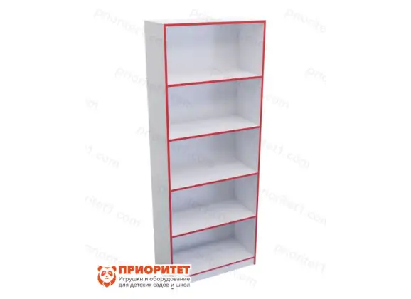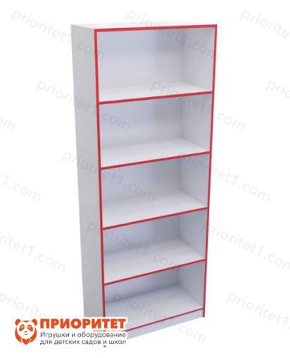Стеллаж из пяти открытых полок, с задней стенкой. В нем удобно хранить учебники, тетради и альбомы. Подойдет и для других предметов: игрушек, принадлежностей ИЗО, которые ученики смогут взять с полки в любое время. Будет удобен для библиотеки. На нем можно разместить книги разного формата.