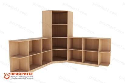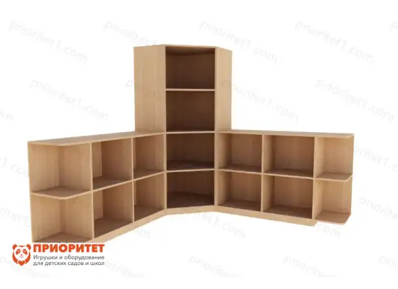 Лаконичный стеллаж «Уголок» изготовленный из 16 мм ЛДСП в светлом оттенке натурального дерева, станет отличным приобретением для интерьера детского сада или другого помещения, предназначенного для обучения, отдыха детей. Необычная конструкция позволяет с минимальной потерей пространства размещать вместительный стеллаж. Его отделений хватит для множества игрушек, книжек, поделок и прочих детских вещей.