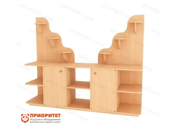 Любовь ребенка к природе требует наличия в интерьере особого предмета — на котором можно с удовольствием размещать все находки и вообще необходимые тематические предметы. Данный стеллаж может стать отличным выбором как для детского дошкольного учреждения, так и для домашней детской. Параметры изделия составляют 171 см длины, 42 см глубины, 130 см высоты.