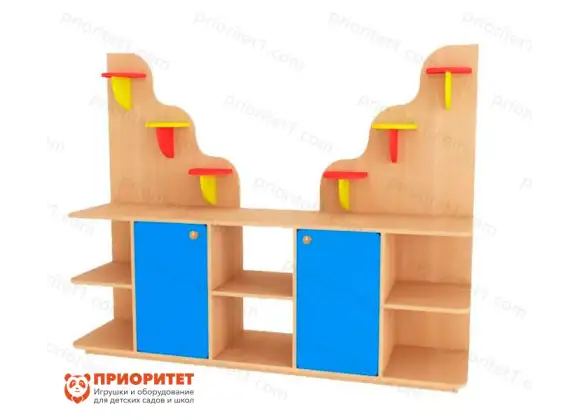 Данный предмет меблировки может стать отличным дополнением интерьера игровой комнаты детского сада или домашней детской — стеллаж предназначен для того, чтобы с удобным доступом и красиво разместить все, что интересует ребенка и относится к природе. Мебель изготовлена из экологически безопасных, прочных и долговечных материалов. Стеллаж имеет следующие параметры — 171 см в длину, 42 см в глубину и 130 см в высоту.