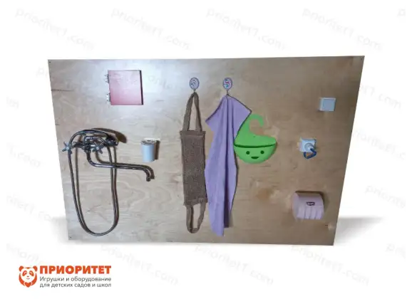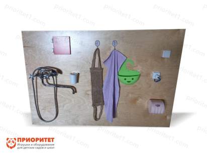 - На стенде ребенок научится использовать душ, кран, мыльницу, узнает о гигиенических процедурах.