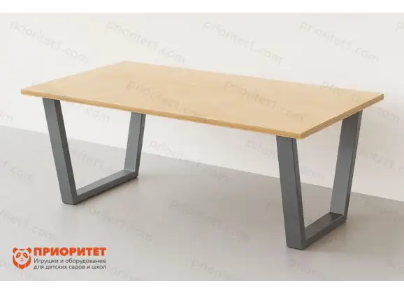 Стол большой из серии «Медовая» — прочный крупноформатный стол для групповой работы в детском саду, школе, кабинетах дополнительного образования и развивающих центрах. Столешница выполнена из берёзовой фанеры (светлая однотонная поверхность) и покрыта тремя слоями матового лака.