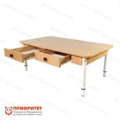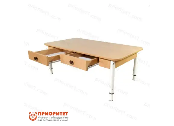 - Для каждого малыша стол оборудован ящиком для учебных принадлежностей, удобная ручка на передней планке поможет ребенку легко открывать его и закрывать.
