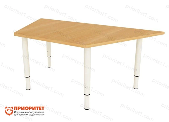 Трапециевидная форма детского стола не противоречит требованиям ФГОС ДО к обеспечению образовательного процесса в дошкольных учреждениях. Использование такого стола пробуждает детское любопытство нестандартным подходом. За стол можно сесть вдвоем или по одному. При необходимости легко собрать интересную разомкнутую и сомкнутую змейку. Малышам интересно заниматься за таким сооружением учебно-познавательной или игровой деятельностью. Специальные регулирующие ножки дают возможность быстро приводить высоту стола в соответствие с ростом ребенка. Дети растут быстро, проводить замеры и корректировку требуется как минимум 1 раз в полугодие. Это обеспечит выполнение требований санитарно-гигиенических правил.