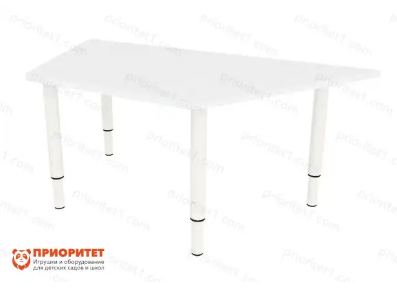 Подбор мебели для дошкольных организаций необходимо проводить творчески. Не всякое помещение приспособлено для стандартной расстановки мебели. Стол «Трапеция» используется в нескольких вариантах. Можно расставить столы по одному или соединить интересной змейкой. Создать круглый стол для коллективной деятельности также легко. Организация занятий примет новый окрас, малышей в таких случаях легче вовлечь в учебно-познавательную или игровую деятельность. Регулировка высоты мебели обеспечивает длительное использование мебели в одном помещении без замены. Столы соответствуют требованиям ФГОС ДО и санитарно-гигиенических правил.