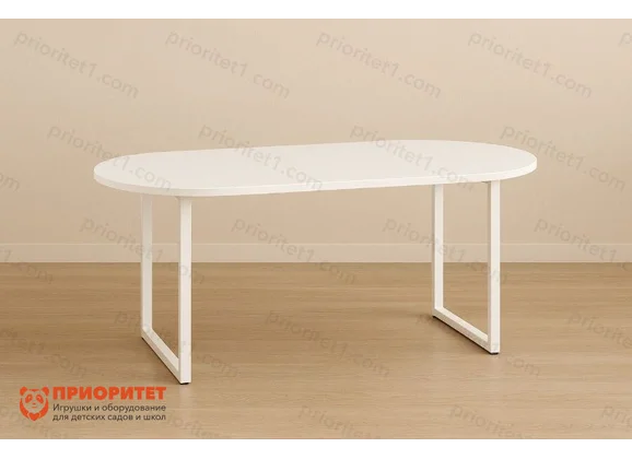 Стол для заседаний «Приоритет» создан для тех пространств, где важны общение, идеи и решения. Его овальная форма задаёт мягкую динамику, побуждая к диалогу и совместной работе, а лаконичный белый цвет делает интерьер светлым, современным и собранным.