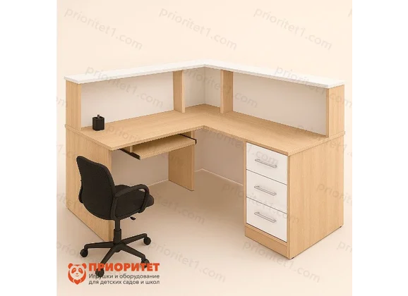 Стол-кафедра выдачи литературы — это современное и эргономичное решение для организации зоны обслуживания посетителей в библиотеке, медиатеке, читальном зале или учебном центре. Конструкция выполнена в форме буквы «Г», что обеспечивает удобное размещение рабочего оборудования, каталогов и литературы. Такой стол для библиотекаря сочетает в себе практичность, стиль и долговечность, помогая организовать процесс выдачи и приёма книг максимально комфортно.