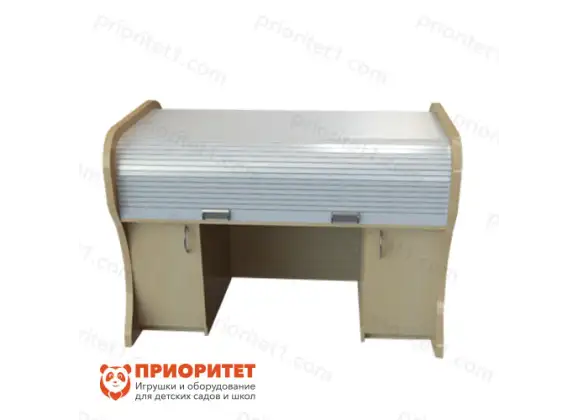 Стол также оборудован двумя закрывающимися шкафчиками. Дверцы шкафов закрываются на ключ. Закругленные углы боковых стенок не травмируют непоседливых почемучек. Такой стол может быть расположен в детском саду, общеобразовательной школе, коррекционном центре, а также в учреждениях дополнительного образования. Бежевый цвет подойдет для любого интерьера и не будет выпадать из общей картины.