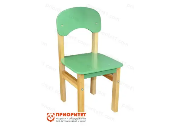 Ножки и каркас покрыты бесцветным лаком, остальные элементы окрашены в светло-зеленый цвет. Он вызывает положительные эмоции и создает спокойную, уютную атмосферу. Вносит разнообразие в интерьер, поднимает настроение. Подойдет для мальчиков и девочек, для современной квартиры и общественного детского учреждения.