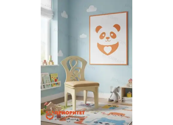 - Спинка стула выполнена в виде скрипичного ключа. Такие стулья украсят актовый зал дошкольного учреждения и порадуют маленьких музыкантов.
