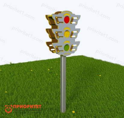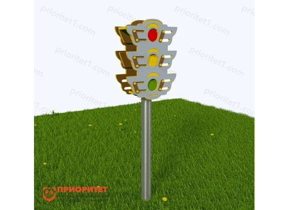 .Светофор оригинальной формы с пешеходными сигналами для обучения правилам перехода через дорогу.