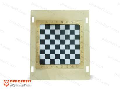 - Цель панели – обучить малышей основам игры в шахматы. На поверхности нарисована шахматная доска и нумерация, которая используется в игре – буквы латиницы от A до H и цифры от 1 до 8. Малыши могут изучать движения фигур, ориентируясь на нумерацию. И даже повторять шахматные стратегии за профессионалами.
