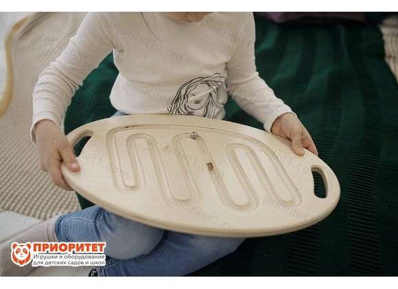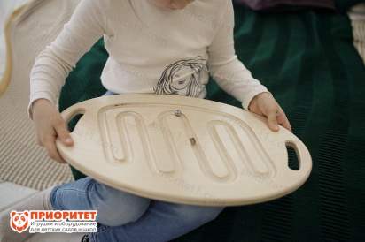Панель представляет собой доску с высеченной на ней дорожкой-лабиринтом. Шарик, катающийся по дорожке, поможет определить самого ловкого из детей и натренироваться остальным. Занятия с панелью рекомендованы в дошкольных организациях, центрах реабилитации и развития, школах и домашних условиях.