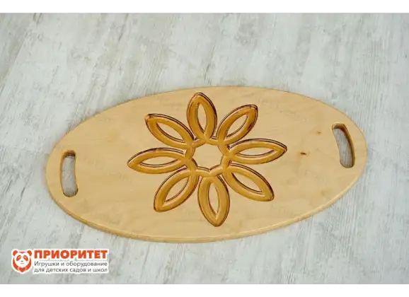 Простая на вид, но сложная для прохождения тактильно-развивающая панель представляет собой доску овальной формы, на которой высечена замкнутая дорожка из извилистых линий. Детей привлекает нежный вид цветочка, в форме которого выполнена дорожка. Тренажер помогает стимулировать мышечную систему рук и развивает координацию. Занятия рекомендуется проводить в дошкольных организациях, кабинетах психолога и логопеда и в домашней среде.
