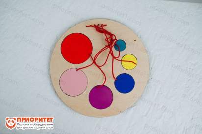 - Веревочки, которыми присоединяются элементы к панели, не дают цветным дискам потеряться и тем самым нарушить целостность оборудования;