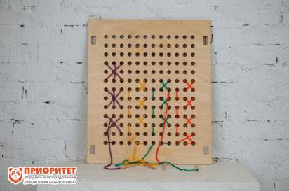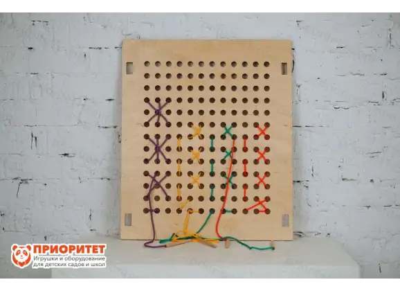Панель “Полезная вышивка” - это красивое и практичное дополнение к детской комнате дома или в любом дошкольном учреждении. С помощью больших и безопасных иголок и толстых красочных нитей, малыш может создавать причудливые узоры или просто тренировать свою аккуратность. Все элементы панели подобраны с учетом особенностей детского здоровья - они не вызывают аллергии и не травмоопасны.
