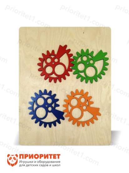 Тактильно-развивающая панель соответствует всем требованиям ФГОС. Выполнено изделие из тщательно обработанного и отшлифованного дерева, которое покрашено безопасной гипоаллергенной краской. Материалы не навредят здоровью детей. Шестеренки интересной формы прочно установлены на панели, они соприкасаются между собой таким образом, чтобы беспрепятственно крутиться. Цвета развивающих предметов: красный, оранжевый, зеленый, синий. Подходит для мальчиков и девочек от 3 лет.
