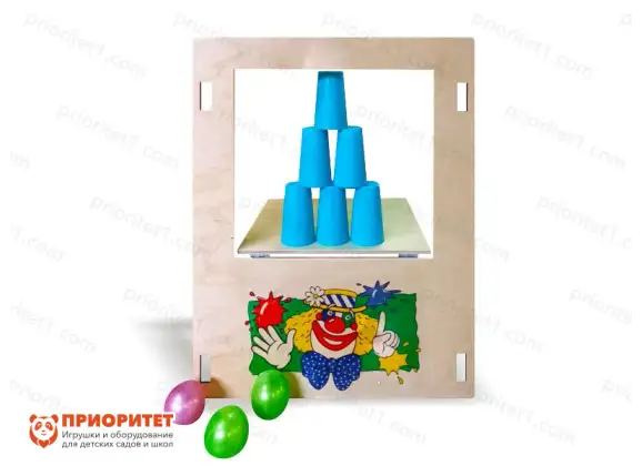 - В нижней части панели нанесено изображение клоуна, что привлекает внимание ребенка и задает положительный настрой игры.
