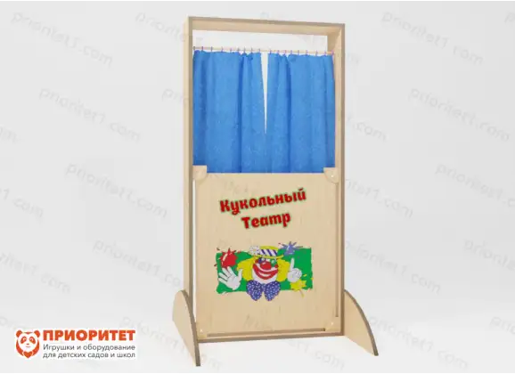 - Ширма сделана из натуральной фанеры: дерево было отшлифовано и покрыто лаком, а ножки скруглены для безопасности детей. Для занавески используют прочный текстиль.