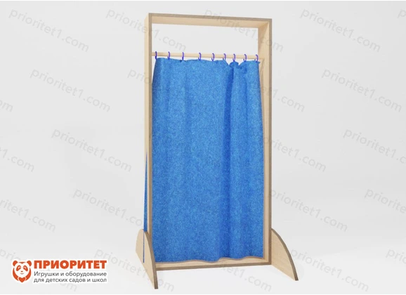 «Заглянем за кулисы» – это простой комплекс, который развивает воображение и тактильные ощущения ребенка. Представляет собой деревянную арку с занавеской, за которой может спрятаться ребенок. Арку можно использовать для сюжетно-ролевых игр с детьми или для зоны переодевания.
