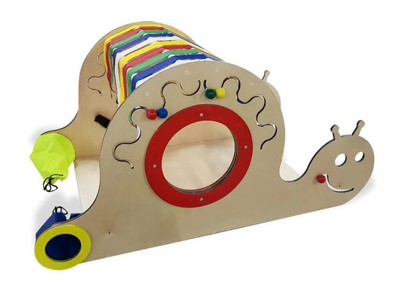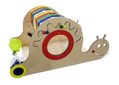 - Развивающий комплекс изготовлен в виде улитки, что привлекает внимание ребенка.